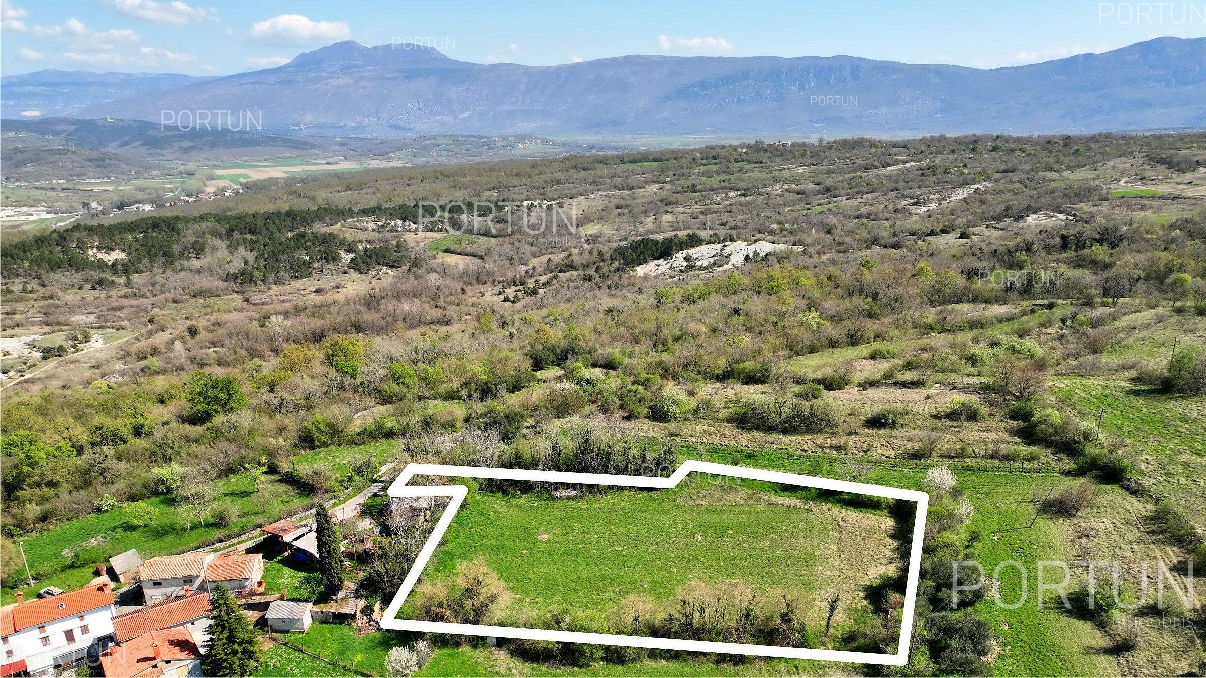 At the edge of a small village near Kršan, a spacious agricultural land of 3,478 m2 is for sale. Located by a road and close to the building zone, this land offers excellent access and possibilities for various agricultural activities. Only minutes away from the sea, the town, and basic amenities.